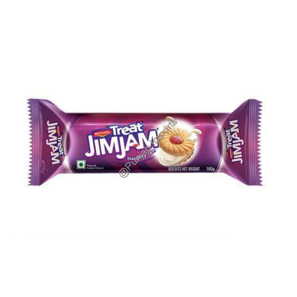 Britannia Jim Jam Biscuits – 100g, a delightful sandwich biscuit that’s been a favorite among children and families for generations. Combining two crisp vanilla-flavored biscuits with a layer of sweet vanilla cream and a dollop of fruity jam at the center, Jim Jam brings a joyful blend of taste, texture, and nostalgia in every bite.