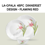 The following items are included in the package: 8 Full Plate (250 mm), 8 Quarter Plate (190 mm), 8 Veg Bowl (200 ml) , 8 Soup Bowl (300 ml), 1 rice Plate (320 mm), 2 casserole(1450 ml), 2 lid, 8 soup spoon