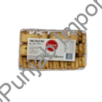 An elegant Indian style tea cake rusk made with the rich addition of almonds. Features a vanilla sponge studded with crunchy sliced almonds and baked into petite loaf shapes. After baking, the small cakes are cut and dried completely to intensify their signature crispy texture. Each bite starts with a crackly exterior giving way to a soft, almond-flecked interior with subtle sweetness. The nutty crunch of toasted almonds plays beautifully against the vanilla cake for sophisticated flavor. Elevates any tea time into a gourmet affair while retaining nostalgic rusk charm. A creative fusion perfect with hot drinks or straight out of the packet