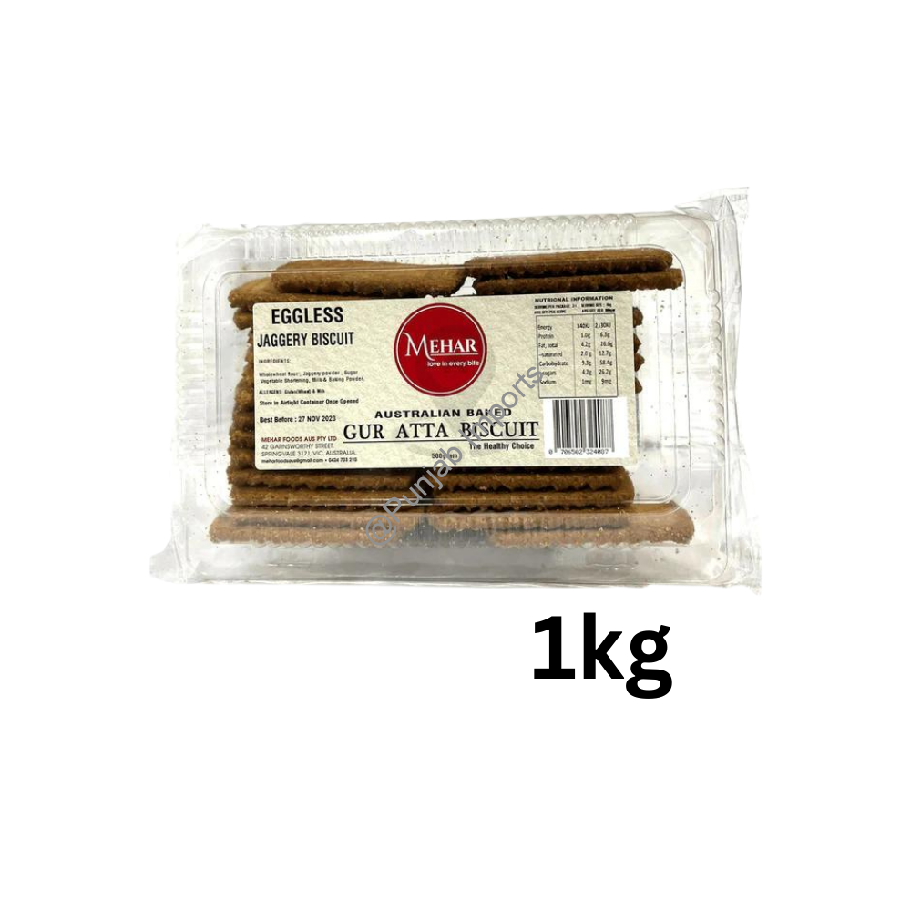 Gur Atta Biscuits – 1Kg, a nourishing and flavorful snack made from the goodness of whole wheat flour (atta) and natural jaggery (gur). These biscuits are not just a treat for your taste buds but also a nod to the way our grandmothers baked — using simple, wholesome ingredients without artificial additives.