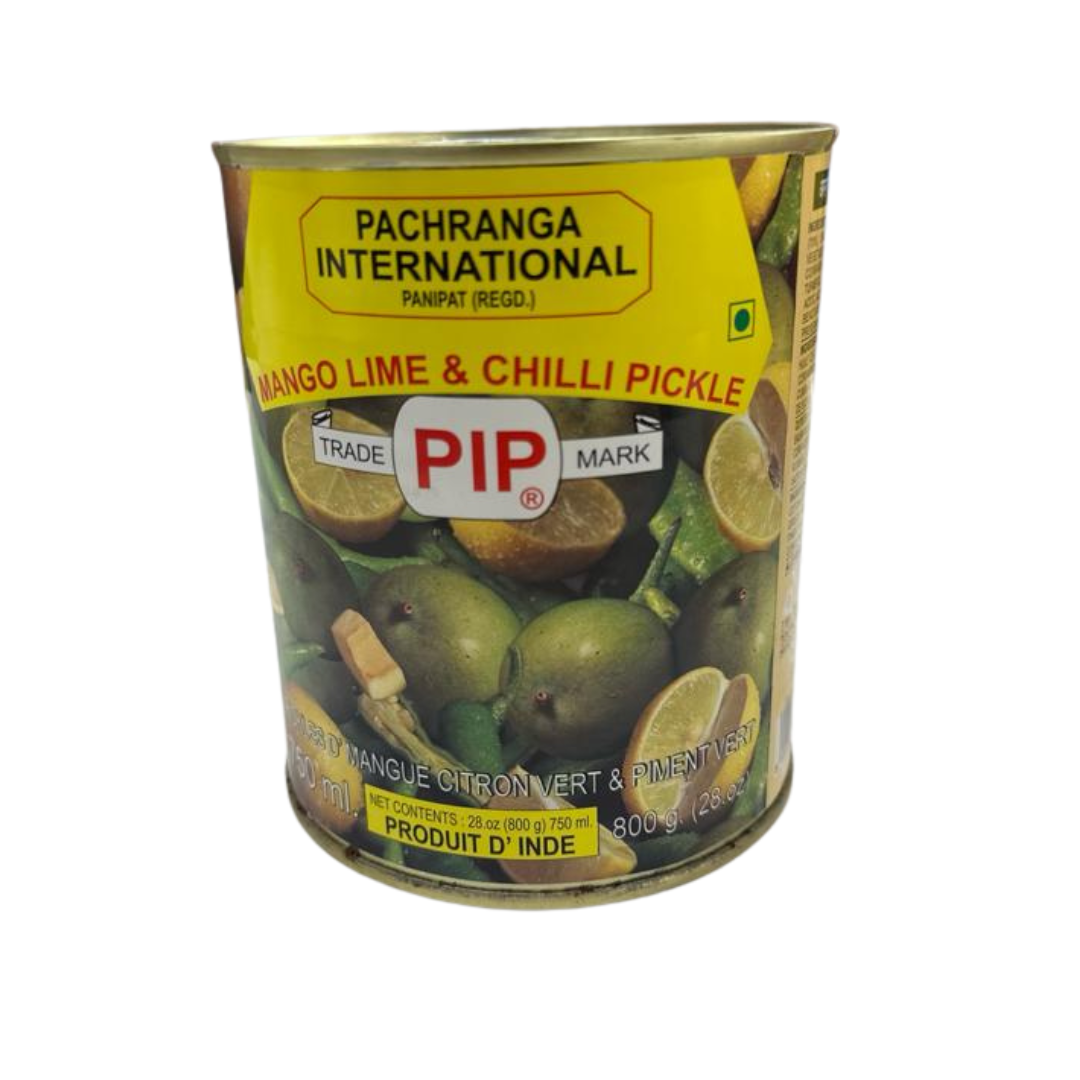 Pachranga Mango Lime & Chilli Pickle – 800 g is a spicy-sour Indian condiment made with handpicked mangoes, limes, and green chillies preserved in edible oil with a rich spice blend. Crafted by Pachranga International Pickles, based in Panipat (India’s historic pickle hub), this variety blends three tangy ingredients for a bold, vibrant taste experience