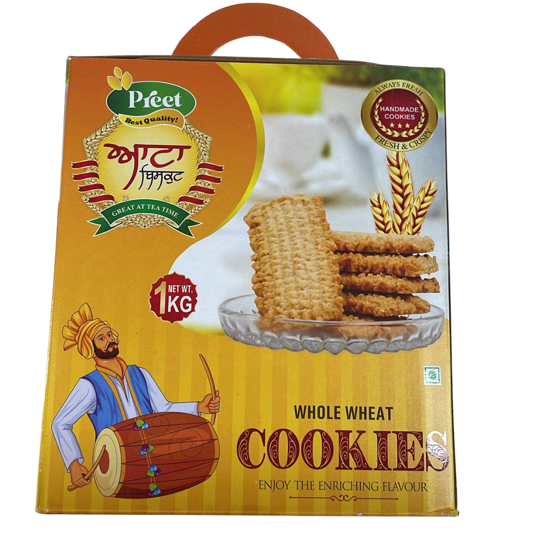 Preet Atta Biscuit – 1kg. Made with the richness of 100% whole wheat flour (atta) and baked to perfection, these biscuits deliver a perfect combination of crisp texture, mild sweetness, and nourishing flavor — just like homemade. Whether you’re sipping your morning chai or looking for a healthy mid-day bite, Preet Atta Biscuits are a trusted choice for families seeking quality with tradition.