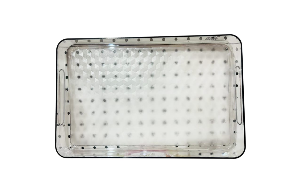 The Prisma Medium Serving Tray is crafted from food-grade, BPA-free plastic, ensuring safety and hygienic use in kitchens and dining spaces.