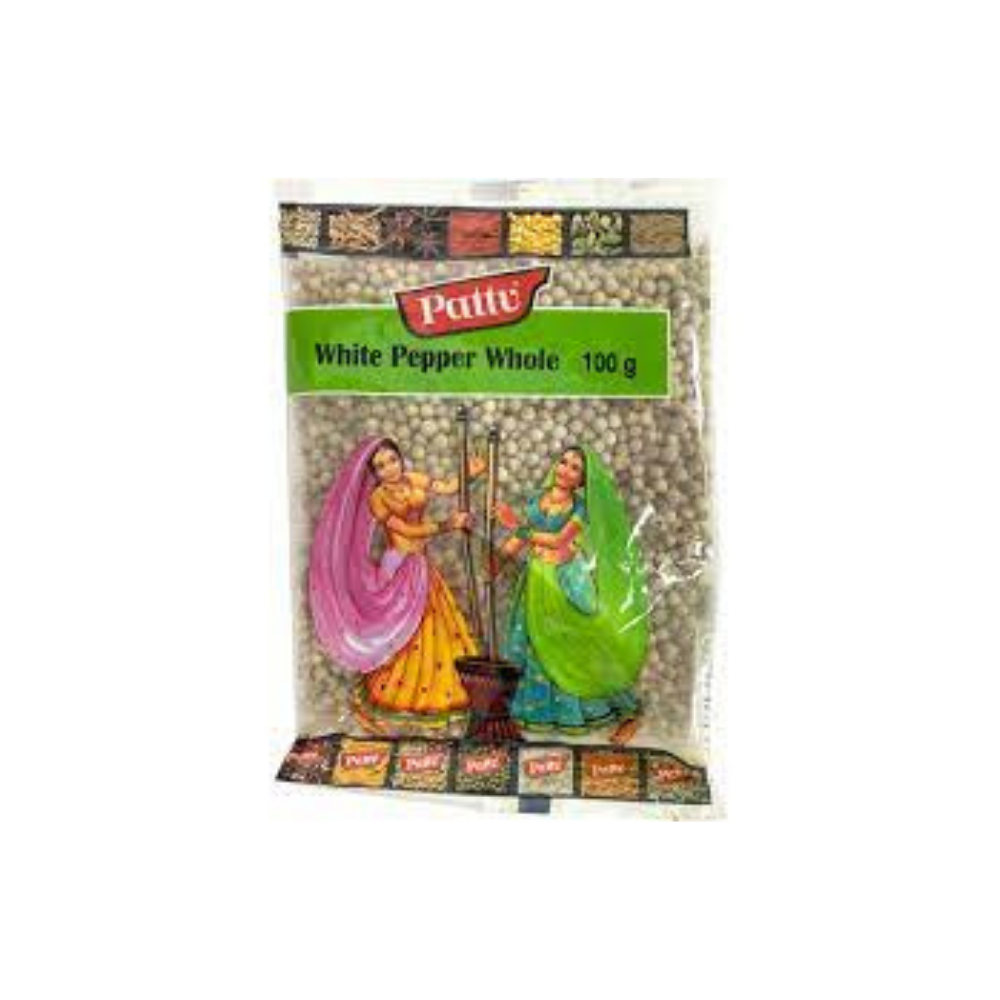 White Pepper Whole 100g Pattu” likely refers to a 100-gram package of whole white pepper by the brand Pattu. White pepper is derived from the Piper nigrum plant, where the outer layer of the peppercorn is removed, leaving only the inner seed. White pepper has a milder flavor compared to black pepper and is often used in dishes where a lighter color is preferred.